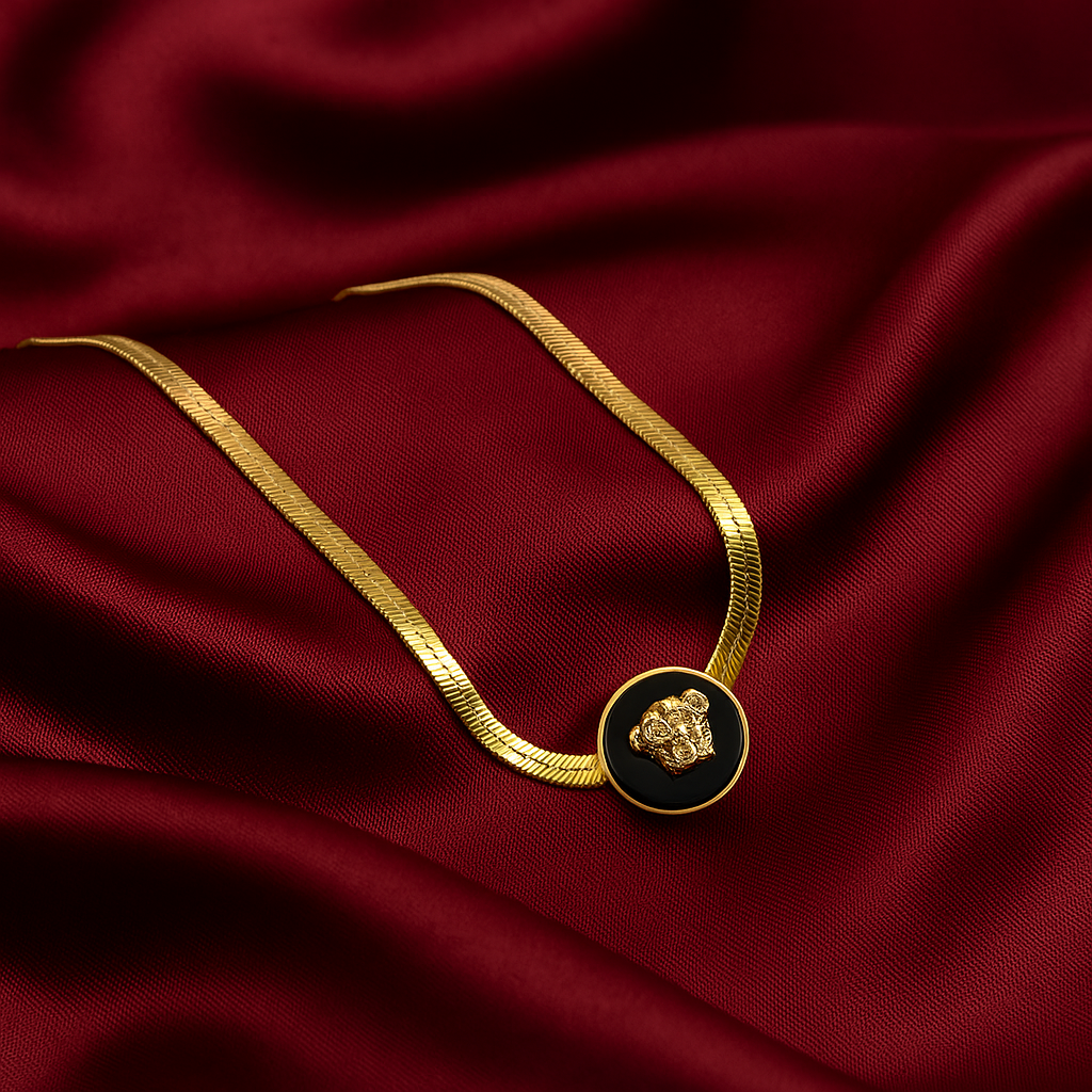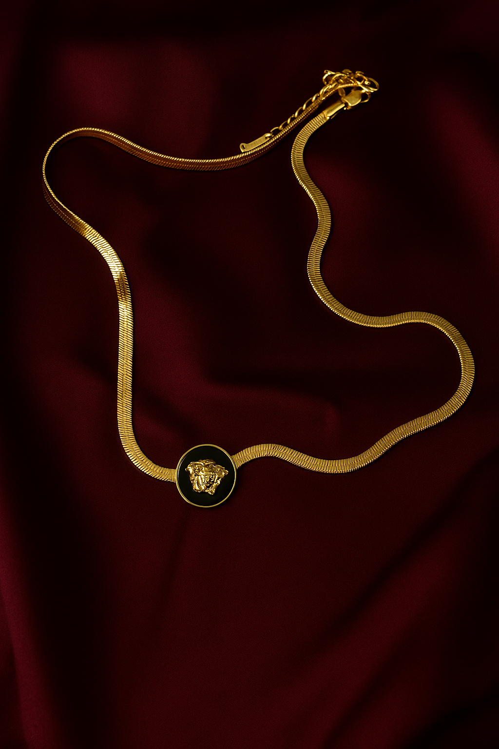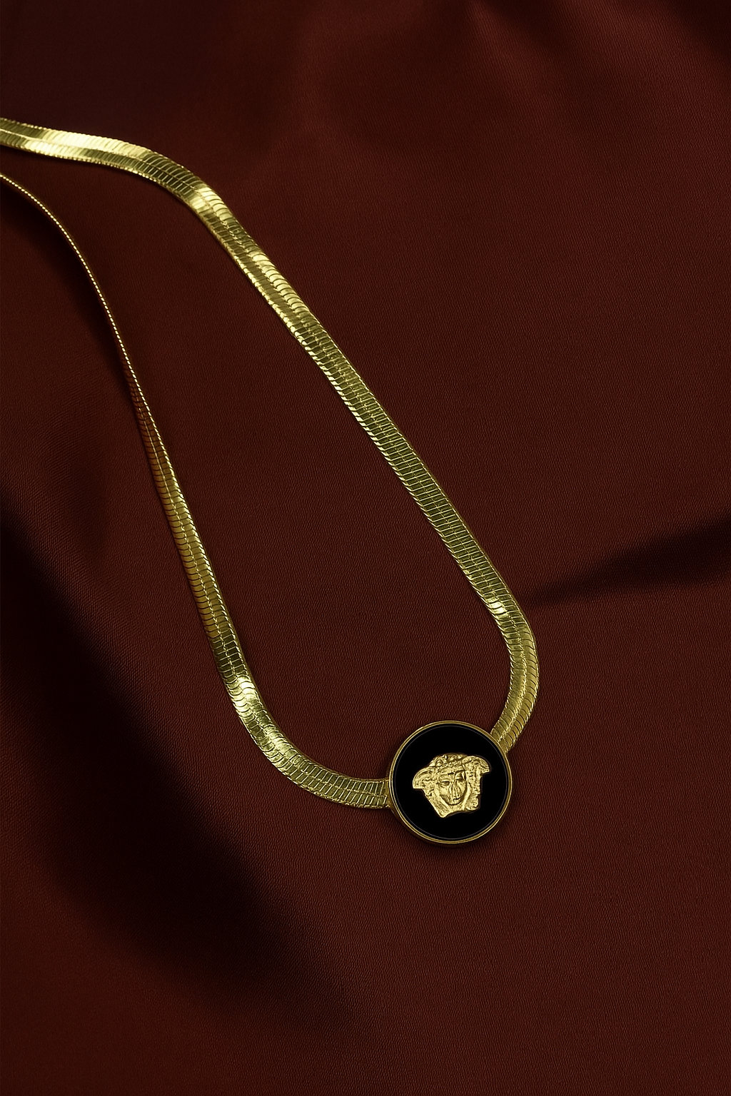 Black Round Pendant Necklaces Stainless Steel Snake Chain Chokers
