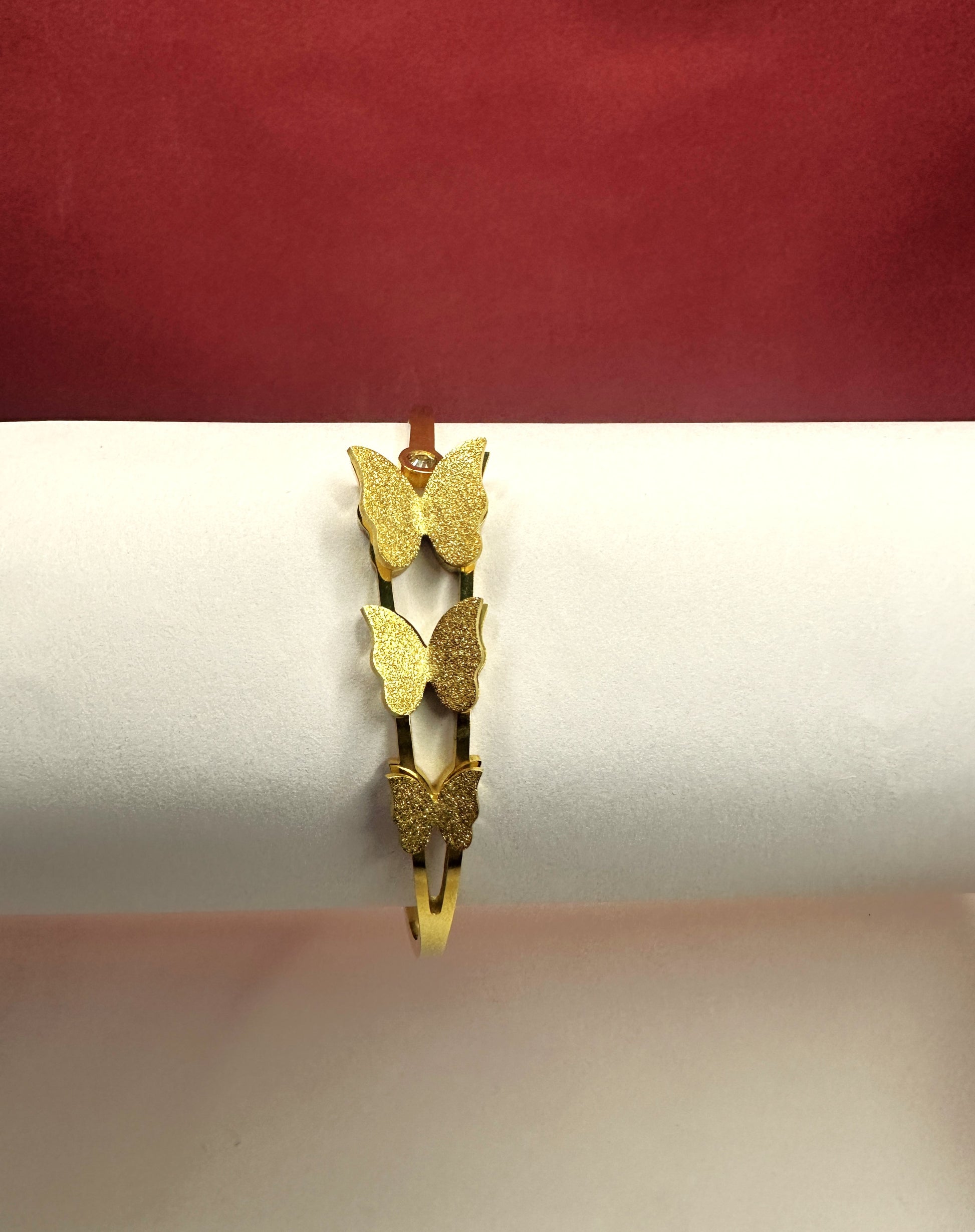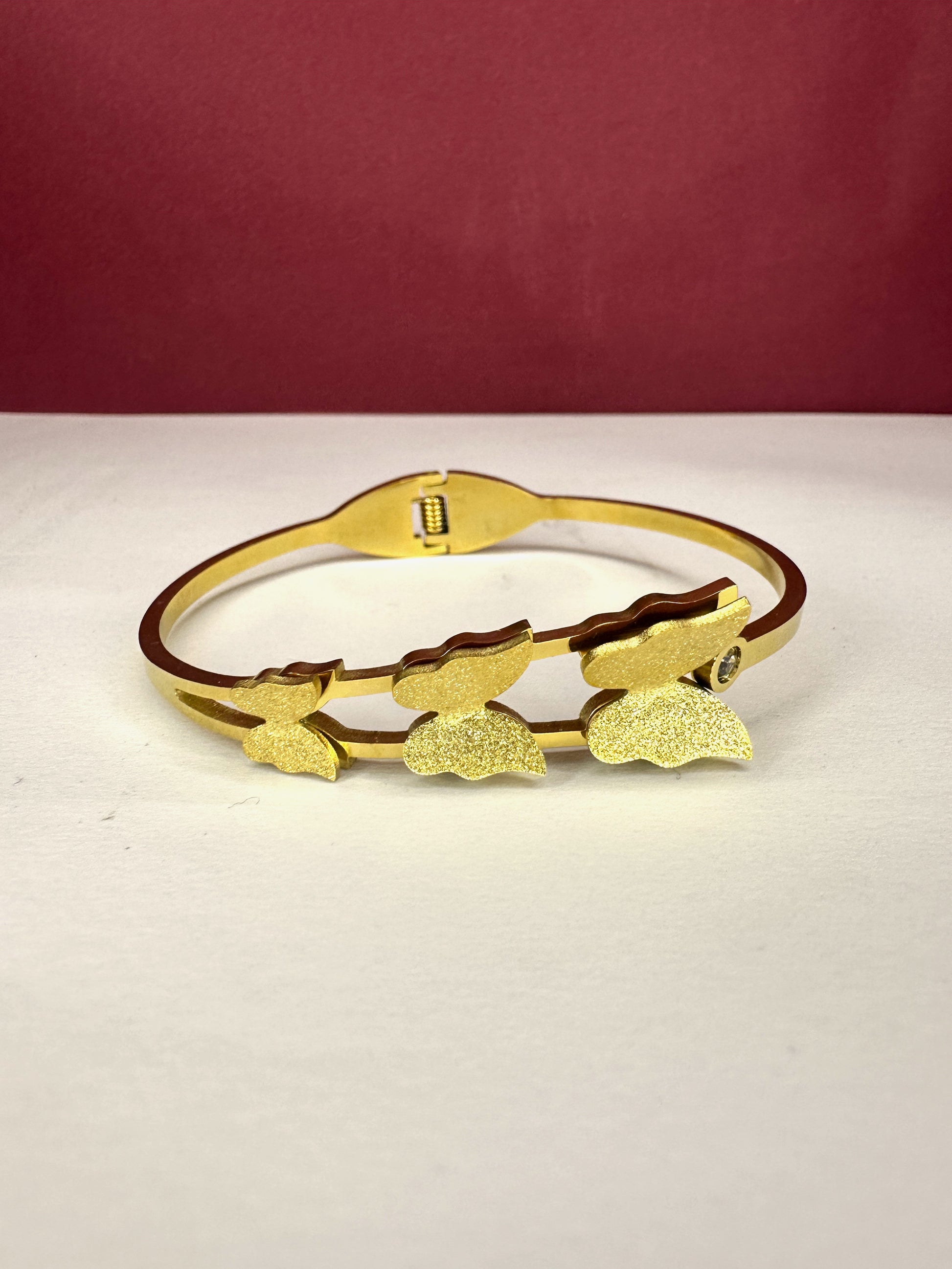 This charming gold bracelet features a playful design with textured bunny-shaped motifs, adding a cute and whimsical touch. Its sleek band and matte-gloss contrast make it perfect for casual and festive wear. Lightweight, stylish, and unique in every detail.