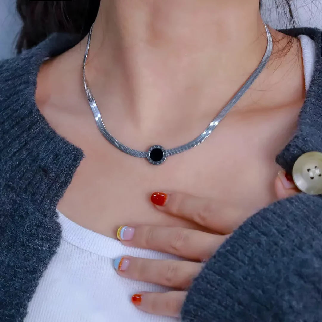 Elevate your style with this sleek, modern snake chain necklace featuring timeless Roman numerals.