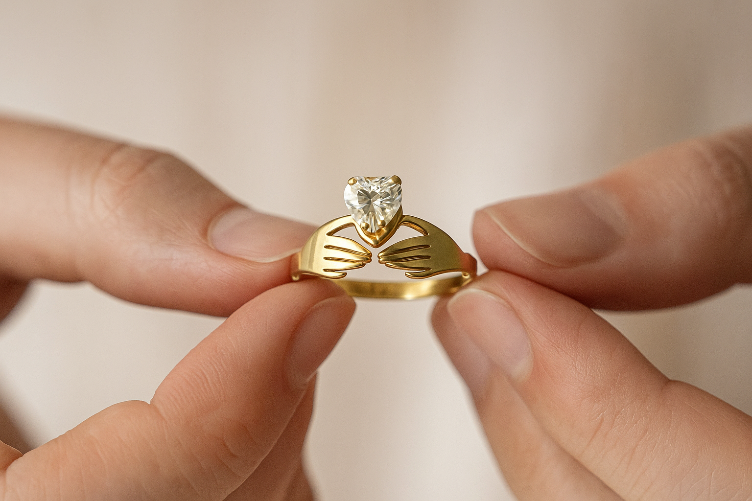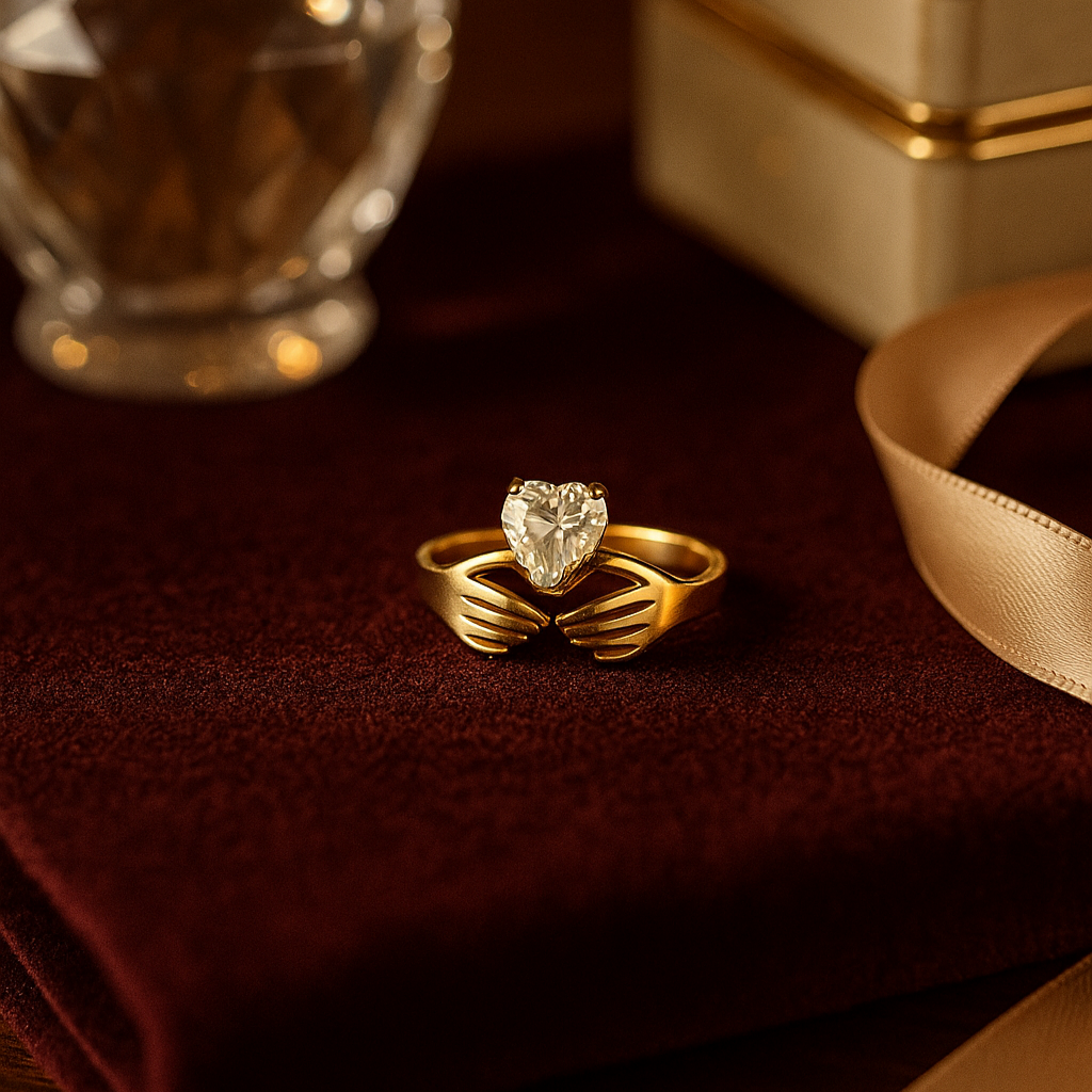 • Heart-shaped crystal centerpiece symbolizing love & purity